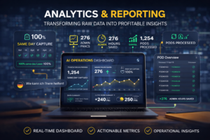 Tracks every POD processed, admin hours saved, and guarantees 100% of PODs are captured the same day, eliminating any delays.