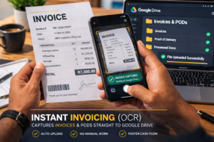 Captures pictures of invoices and PODs straight to Google Drive. We remove manual admin workflows automatically.